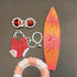 Glasses + swimsuit + necklace + lifebuoy + surfboard