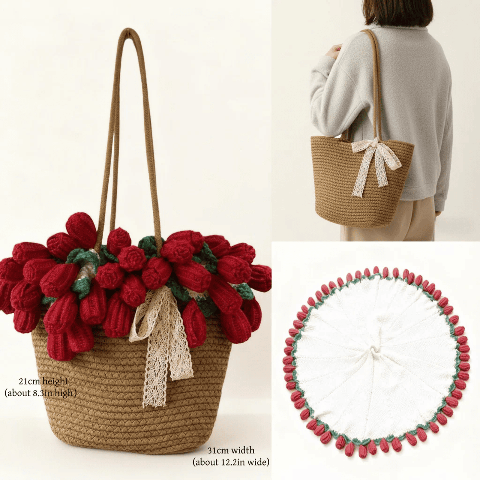 Crochet rose blanket, Handmade women's bag, Bouquet gift