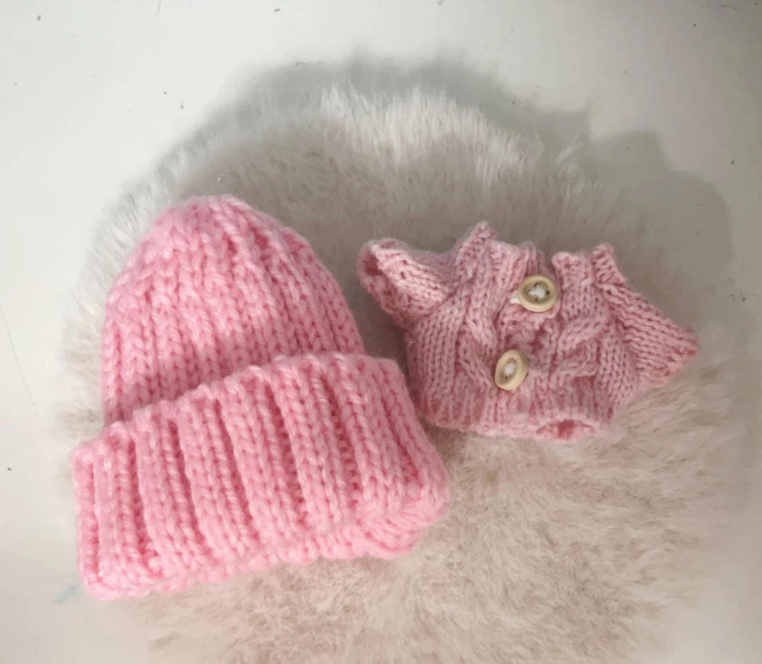 This sweater and hat are hand-knitted and elastic, making them a must-have for everyday wear.