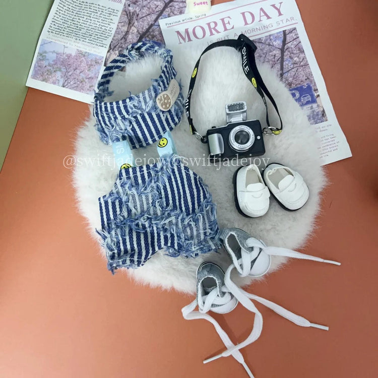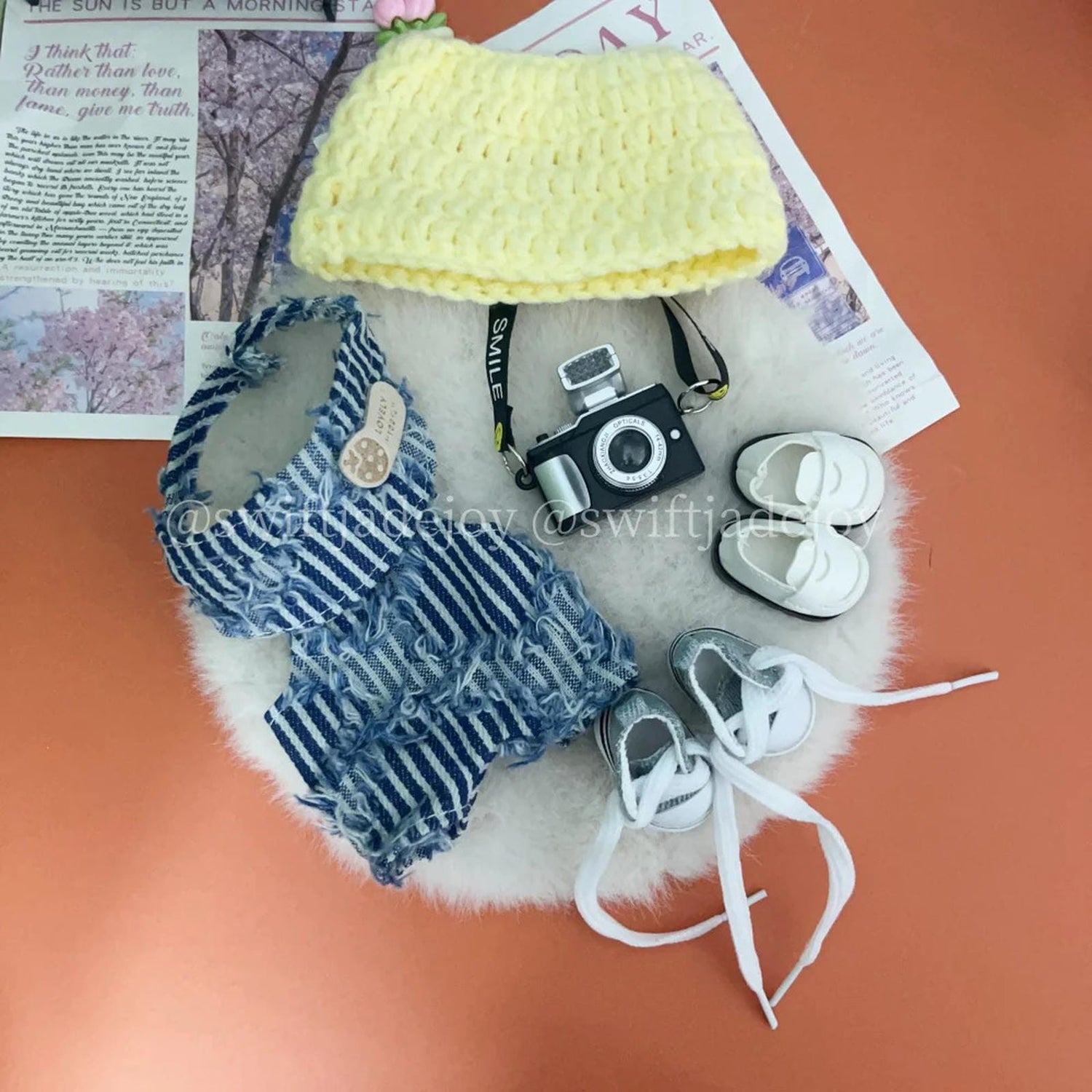Includes: denim suspenders + denim series hat + white leather shoes + yellow woolen hat + denim cloth shoes + camera accessories
