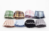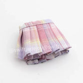 white powder strips, pink, blue, gray, plaid pink, plaid blue, black, purple, white and purple stripes, plaid brown, plaid green