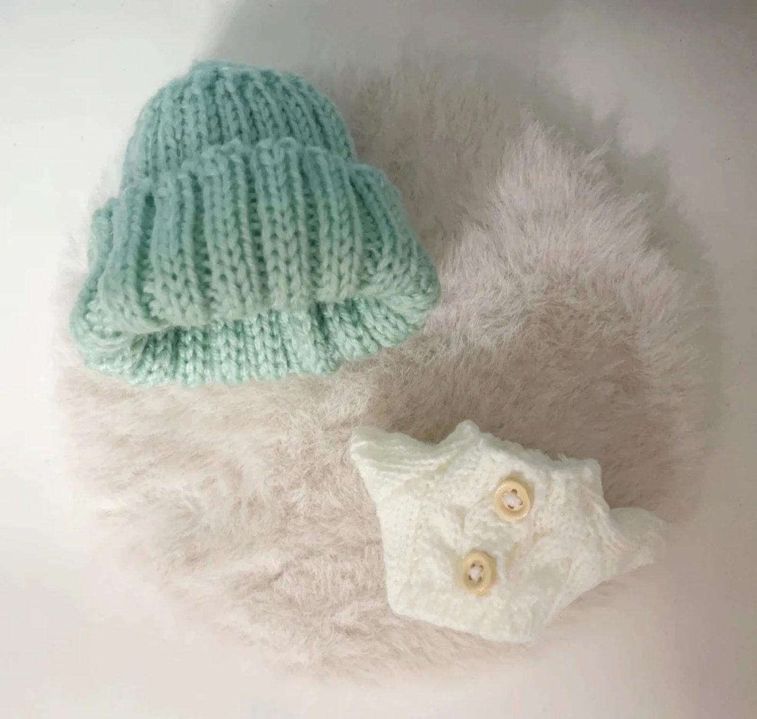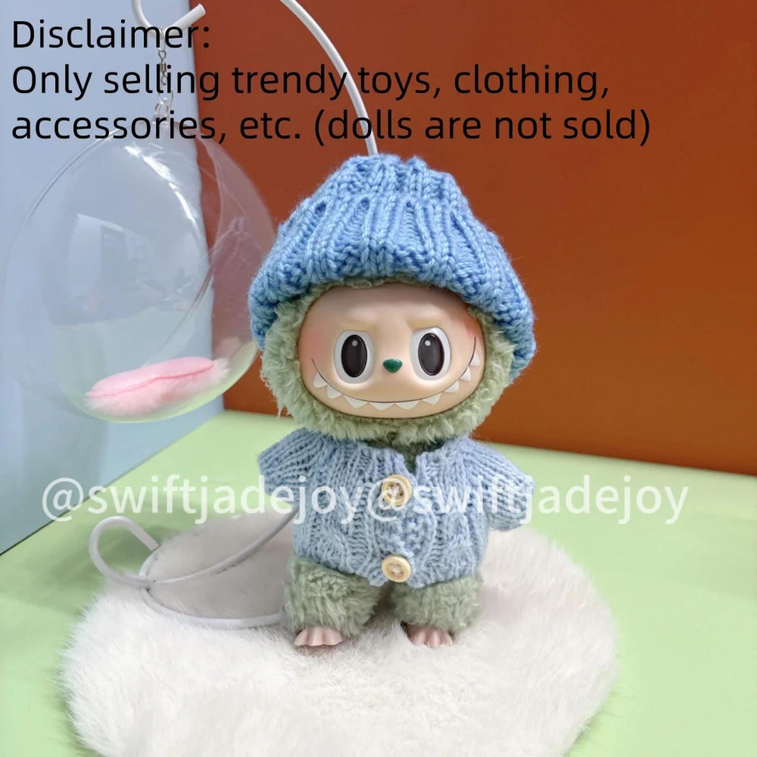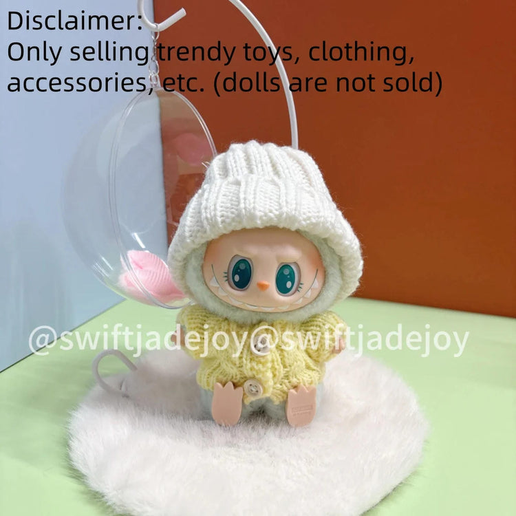 Suitable for first, second and third generation labubu dress-up clothes, hand-knitted woolen pullover sweater with hand-knitted woolen hat