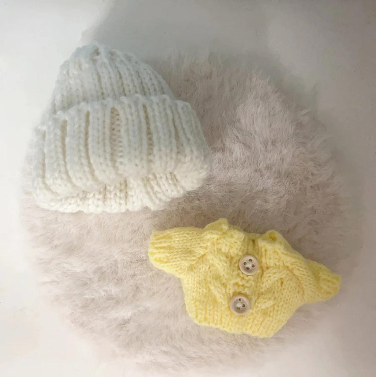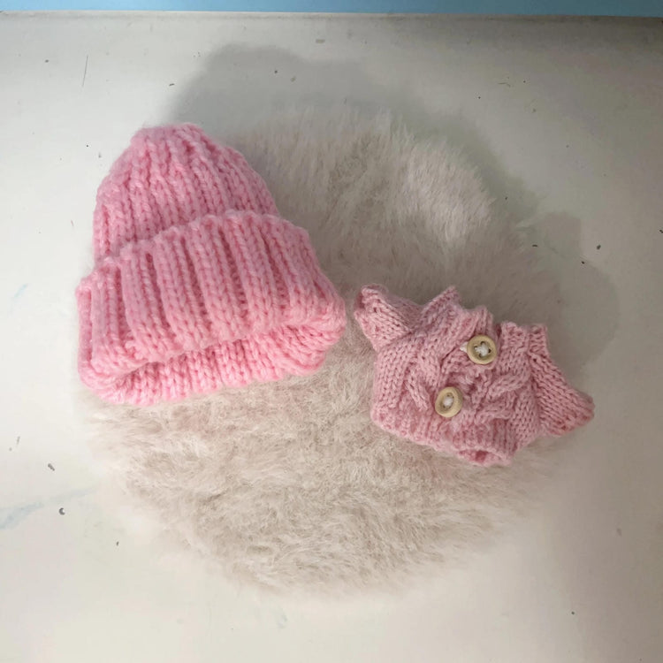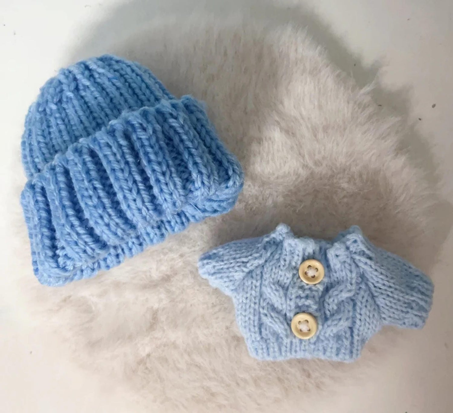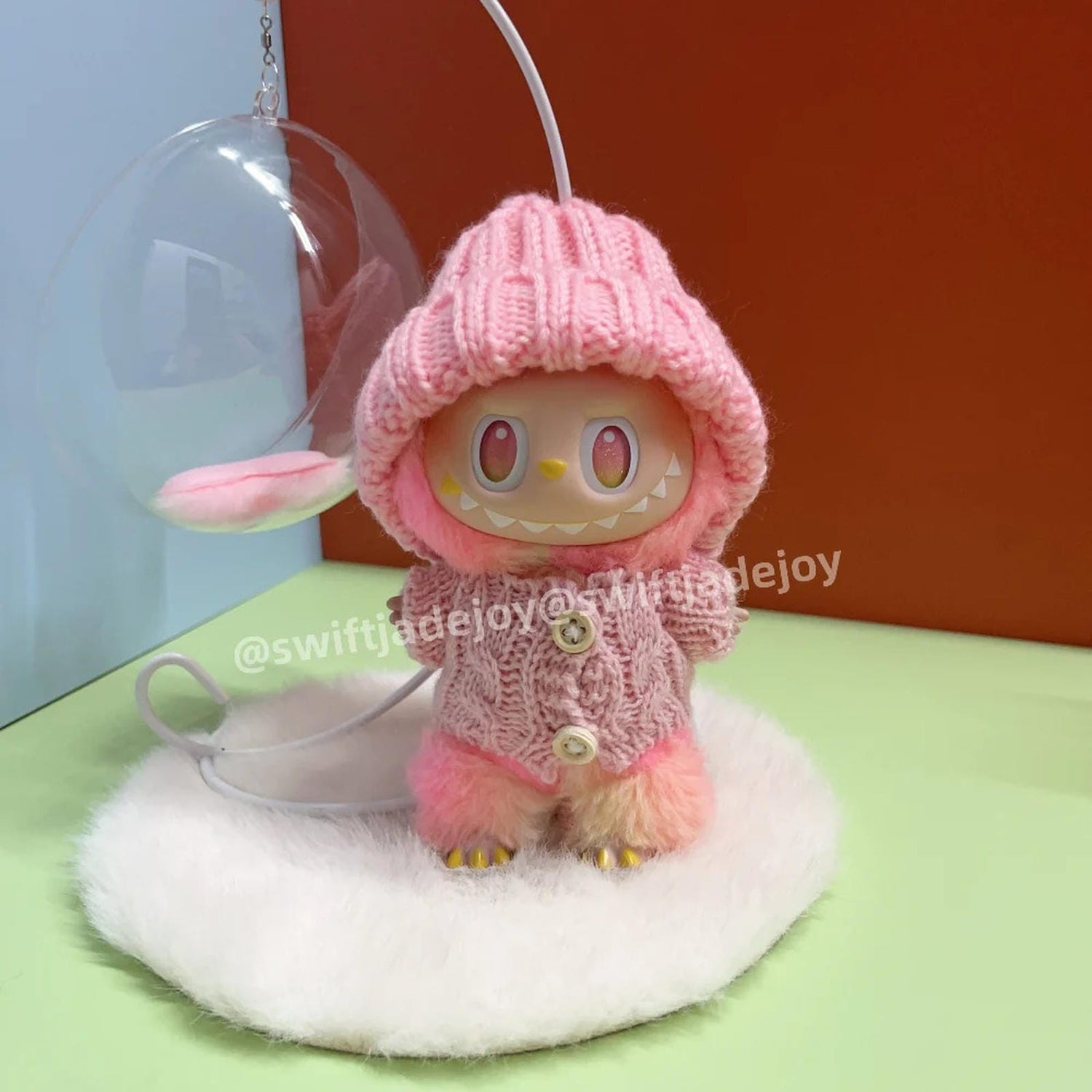 Suitable for first, second and third generation labubu dress-up clothes, hand-knitted woolen pullover sweater with hand-knitted woolen hat