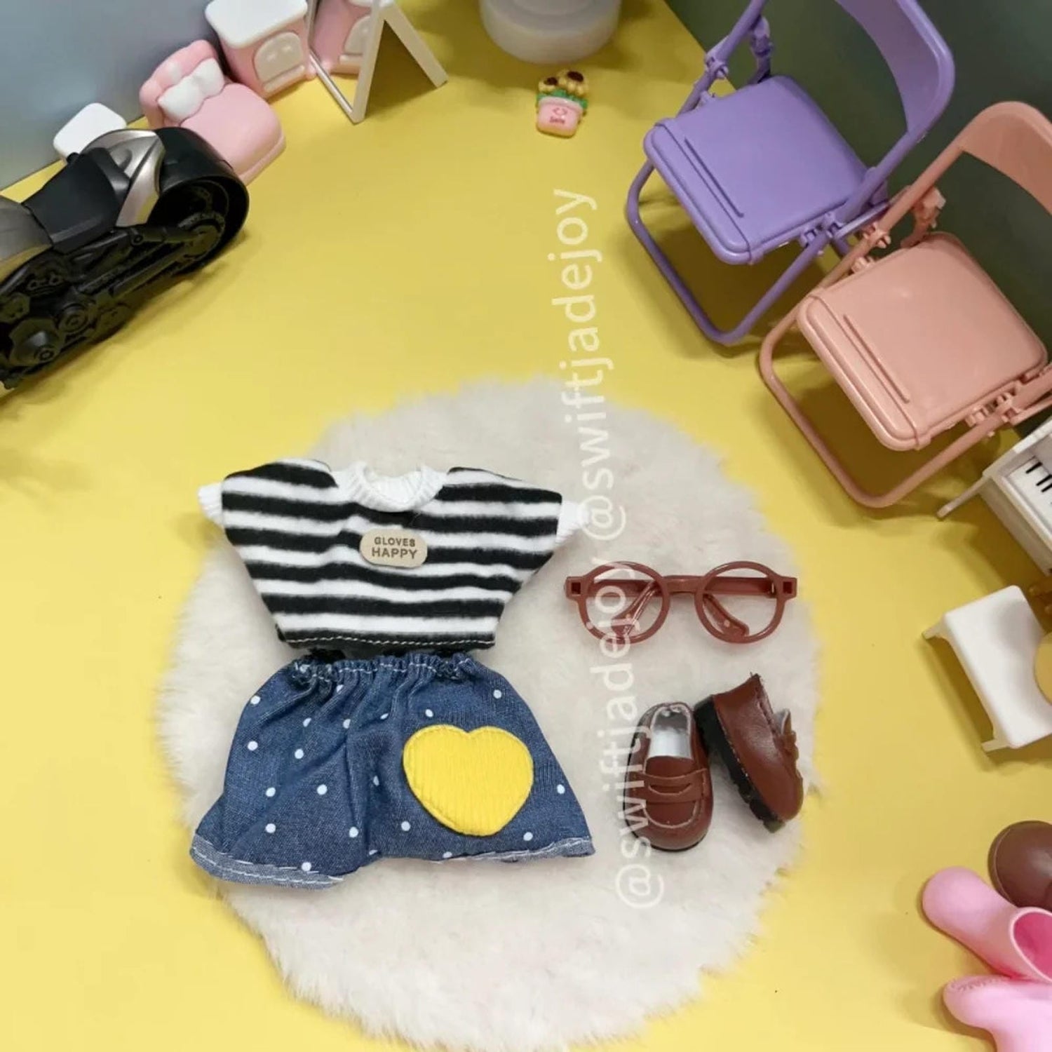 This series features doll dress-up outfits in a variety of styles, including sporty and casual. Each set is a stylish masterpiece.Fits dolls 15/17cm tall.